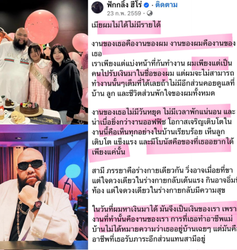 ล่าสุด ด้านโซเชียลได้แชร์ย้อนโพสต์ ของนักร้องดัง อย่าง กอล์ฟ ฟักกลิ้งฮีโร่ ที่เคยโพสต์เกี่ยวภรรยาเมื่อนานแล้ว โดยทางเพจดัง อย่าง มนุษย์ตุ๊ด ได้แชร์และโพสต์ว่า