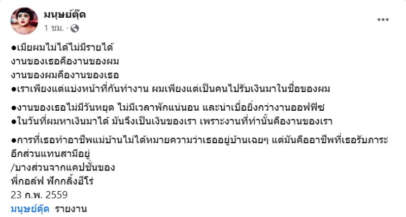 ●เมียผมไม่ได้ไม่มีรายได้ งานของเธอคืองานของผม งานของผมคืองานของเธอ