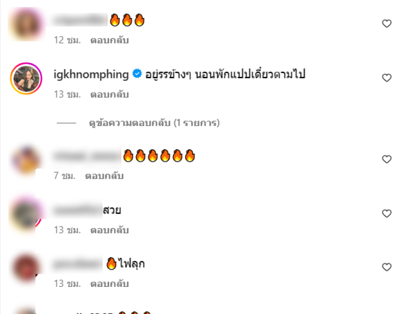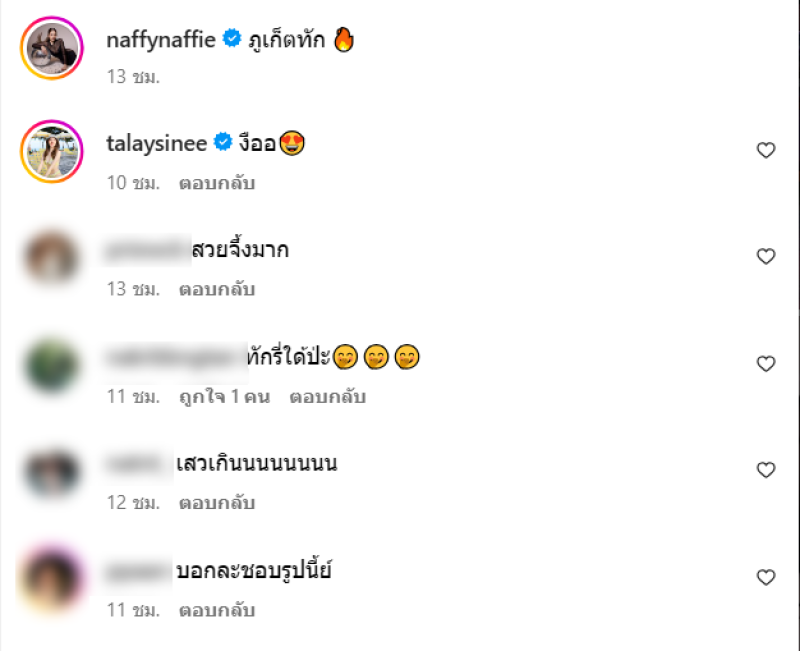 ท่ามกลาง ชาวเน็ตเข้ามาคอมเมนต์กันจำนวนมาก เช่น สวยจึ้งมาก,โหหหหหหหหหหหหหหหหหหหหห,บอกละชอบรูปนี้ย์,ไฟลุก,แกก็แซ่บเกิน เป็นต้น