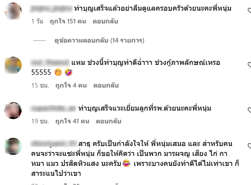 หลังจากที่ หนุ่ม กะลา ได้แชร์โพสต์ลงไปชาวเน็ตต่างแห่เข้ามาคอมเมนต์อย่างมาก อาทิ ทำบุญเสร็จแวะเยี่ยมลูกที่รพ.ด้วยนะคะพี่หนุ่ม,สาธุค่ะ,อนุโมทนาบุญสาธุด้วยค่ะขอให้ได้กุศลผลบุญตลอดไปค่ะ,รักเหมือนเดิมจร้า สู้ๆนะคับ เป็นต้น