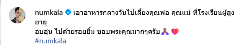 เรียกได้ว่าเมื่อช่วงที่ผ่านมามีกระแสร้อนแรงหนักมากสำหรับนักร้องดังอย่าง หนุ่ม กะลา ที่ตอนนี้ได้พัดกระแสไว้ก่อน ล่าสุดหนุ่ม กะลา ได้โพสต์ภาพทำบุญเลี้ยงอาหารผู้สูงอายุผ่านทางอินสตาแกรมส่วนตัว โดยระบุเเคปชั่นว่า เอาอาหารกลางวันไปเลี้ยงคุณพ่อ คุณแม่ ที่โรงเรียนผู้สูงอายุ อบอุ่น ไปด้วยรอยยิ้ม ขอบพระคุณมากๆครับ numkala