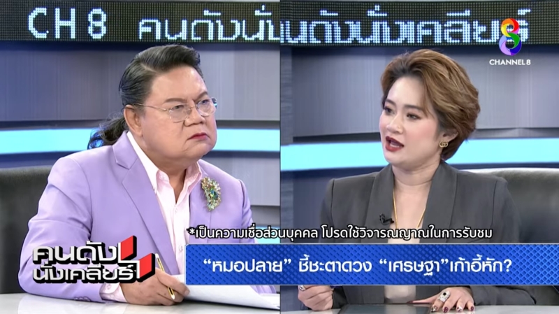 เรียกได้ว่าไม่มีใครไม่รู้จักสำหรับ หมอปลาย พรายกระซิบ ที่ได้ทัก พรรคก้าวไกล ว่าถูกยุบแน่ ซึ่งรายการคนดังนั่งเคลียร์ ทางสถานีโทรทัศน์ช่อง8 ได้เชิญนักทำนายดวงชื่อดัง หมอปลาย พรายกระซิบ มาเปิดดวง ทำนายเรื่องราวดังกล่าว และพูดถึงดวงของอดีตนายกฯ ทักษิณ และ นายกฯ เศรษฐา