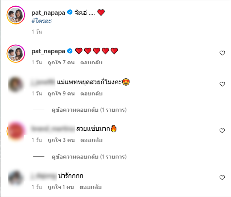 เป็นอีกหนึ่งเจ้าแม่สายแฟนชั่นเช่นกัน แต่ละลุคไม่เคยซ้ำกัน อย่าง แพท ณปภา เป็นคุณแม่สายแซ่บและเข้มแข็งสุดๆ ผ่านดรื่องราวมามากมาย และตัวแบบในความกตัญญูกับคุณแม่มาตลอด ล่าสุดคุณแม่ลูกหนึ่งอย่าง แพท ออกมาอัปเดตความแซ่บอีกครั้ง ผ่านอินสตาแกรม พร้อมระบุข้อความสั้นๆว่า จ๊ะเอ๋ #ใครอะ มาในลุคบีกินี่สีขาวสุดแซ่บ โพสต์ม่าสับๆไปเลยจ้า