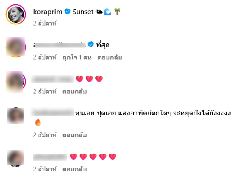 ล่าสุด ปริม ได้โพสต์ภาพไปพักผ่อนที่ทะเลพร้อมแคปชั่นว่า Sunset ซึ่งได้มีภาพคู่กับหนุ่มต่างชาติอยู่ในโพสต์ด้วยฟนุ่มๆพากันอกหักเป็นแถวกันเลยทีเดียว ซึ่งทั้งคู่ชอบออกกำลังกายเหมือนกัน งานนี้ทำเอาแฟนๆคอมเมนต์แซวกันอย่างมาก อาทิ หุ่นเอย ชุดเอย แสงอาทิตย์ตกใดๆ จะหยุดปังได้ยัง,ทะเลหวาน,ฮันนีมูนปะ,น่ารักกกก เป็นต้น