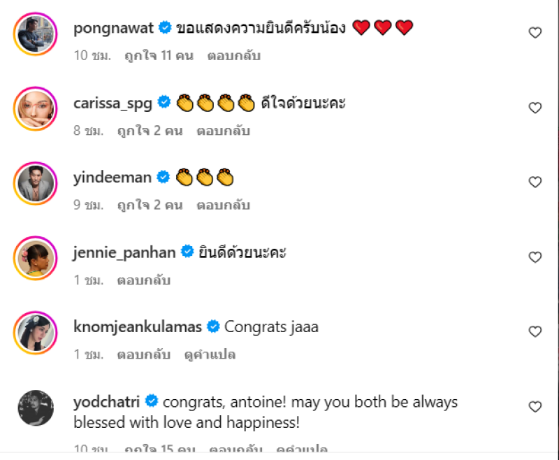 งานนี้ คนในวงการบันเทิงเข้ามาแสดงความยินดีกันจำนวนมาก ทางทีมข่าวก็ขอแสดงความยินดีด้วยนะคะ