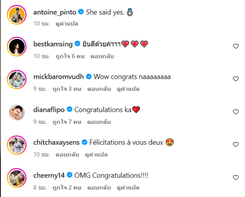 เรียได้ว่า เป็นนักมวย-และดาราหนุ่ม อย่าง อองตวน ปินโต หรือ อันทวน เซ้งบ๊อกซิ่ง ที่หลายๆคนรู้จักดี ล่าสุดได้เผยข่าวดีกับแฟนสาว น้ำมนต์ พิมพ์ธนดา อดีตนางงามหนองบัวลำภู หนึ่งในผู้เข้าประกวดนางสาวไทยปี 2562 ประกาศแต่งแล้วจ้า โดยได้โพสต์พร้อมระบุแคปชั่นสั้นๆว่า She said yes. ซึ่งเป็นภาพสาวน้ำมนต์ โชว์แหวนเม็ดโต สวยมากจริงๆ