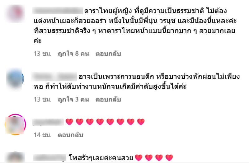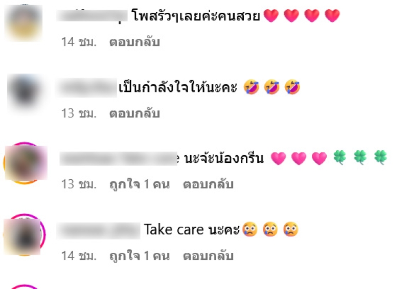 หลังจากที่ กรีน ได้โพสต์ข้อความไปต่างมีชาวเน็ตแห่เข้ามาคอมเมนต์ส่งใจให้รัวๆและยังเป็นกำลังใจให้มากมาย อาทิ อาจเป็นเพราะการนอนดึก หรือบางช่วงพักผ่อนไม่เพียงพอ ก็ทำให้ตับทำงานหนักจนเกิดมีค่าตับสูงขึ้นได้ค่ะ,เป็นกำลังใจให้นะคะ,Take care นะจ้ะน้องกรีน เป็นต้น