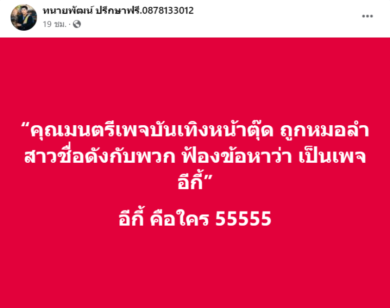 ล่าสุด เหมือนดรามาจะไม่จบง่ายๆ ทางทนายพัฒน์ ได้ออกมาเผยว่า คุณมนตรีเพจบันเทิงหน้าตุ๊ด ถูกหมอลำสาวชื่อดังกับพวก ฟ้องข้อหาว่า เป็นเพจอีกี้ อีกี้ คือใคร 55555