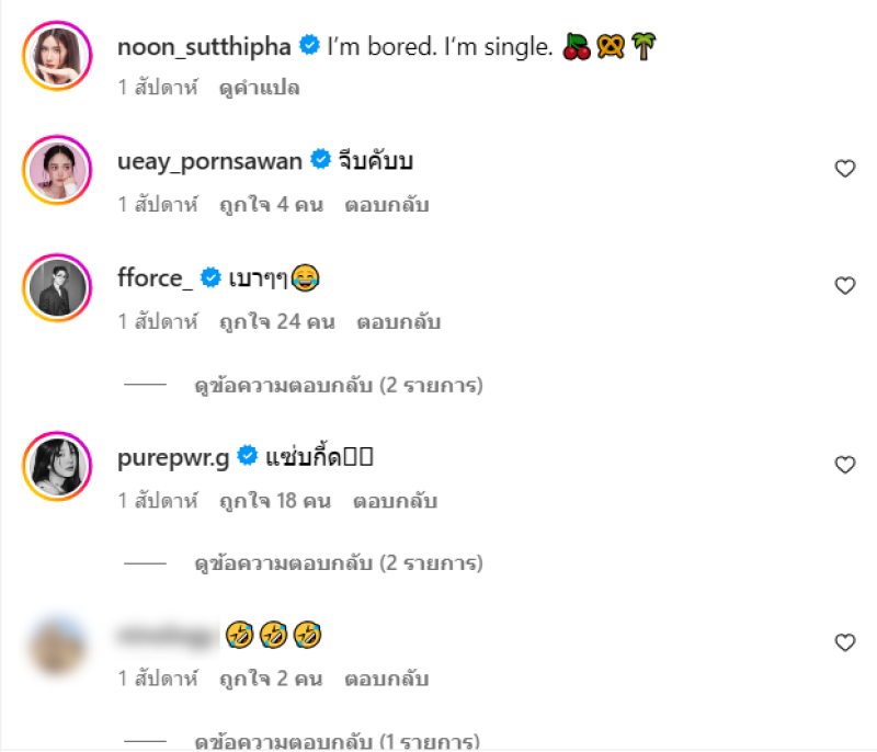 เรียกได้ว่า เป็นดาราสาวที่สวยมาก อย่าง นุ่น สุทธิภา ที่มีผลงานในวงการมานับไม่ถ้วน ล่าสุดทางนุ่น ได้เผยความแซ่บลงโซเชียลผ่านทางอินสตาแกรม โดยได้ระบุแคป I’m bored. I‘m single. มาในลุคบีกินี่รูปเชอร์รี่ บอกว่าแซ่บถึงใจ
