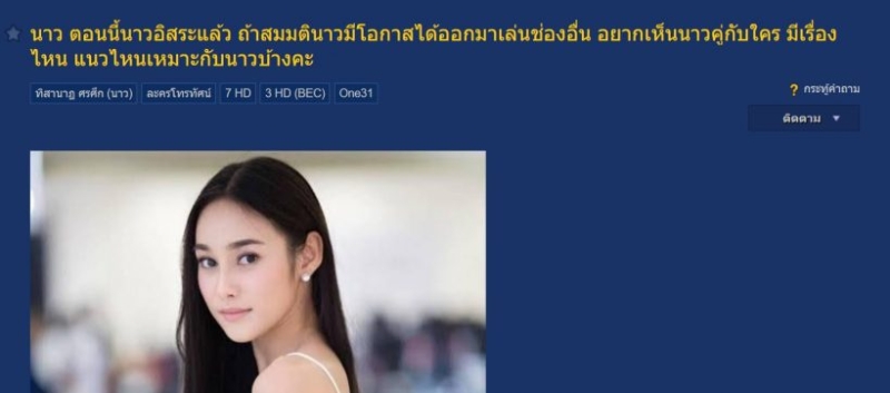 เป็นอีกหนึ่งนางเอกตัวท็อปของช่องดังอย่าง นาว ทิสานาฎ ที่มีผลงานมากมาย ซึ่งแฟนคลับมีการลิสต์รายชื่อของ เหล่าดารานักแสดงที่จ่อหมดสัญญากับช่อง หนึ่งในนั้นคือ นาว ทิสานาฎ ซึ่งตอนนี้ อยู่ในระหว่างเรียนต่อที่ออสเตรเลีย
