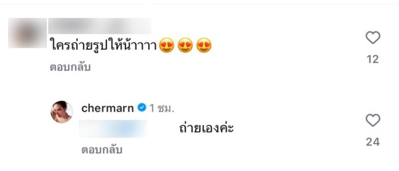และหลังจากที่ พลอย ได้โพสต์รูปดังกล่าวก็มีชาวเน็ตรายหนึ่งคอมเมนต์ว่า ใครถ่ายรูปให้น้า พลอย ก็ได้เข้ามาตอบคอมเมนต์ดัลกว่าทันทีว่า ถ่ายเองค่ะ ทั้งนี้ทั้งนั้นก็ต้องรอฟังจากปากของทั้งคู่ว่าความสัมพันธ์ของเขาจะรอดหรือไม่