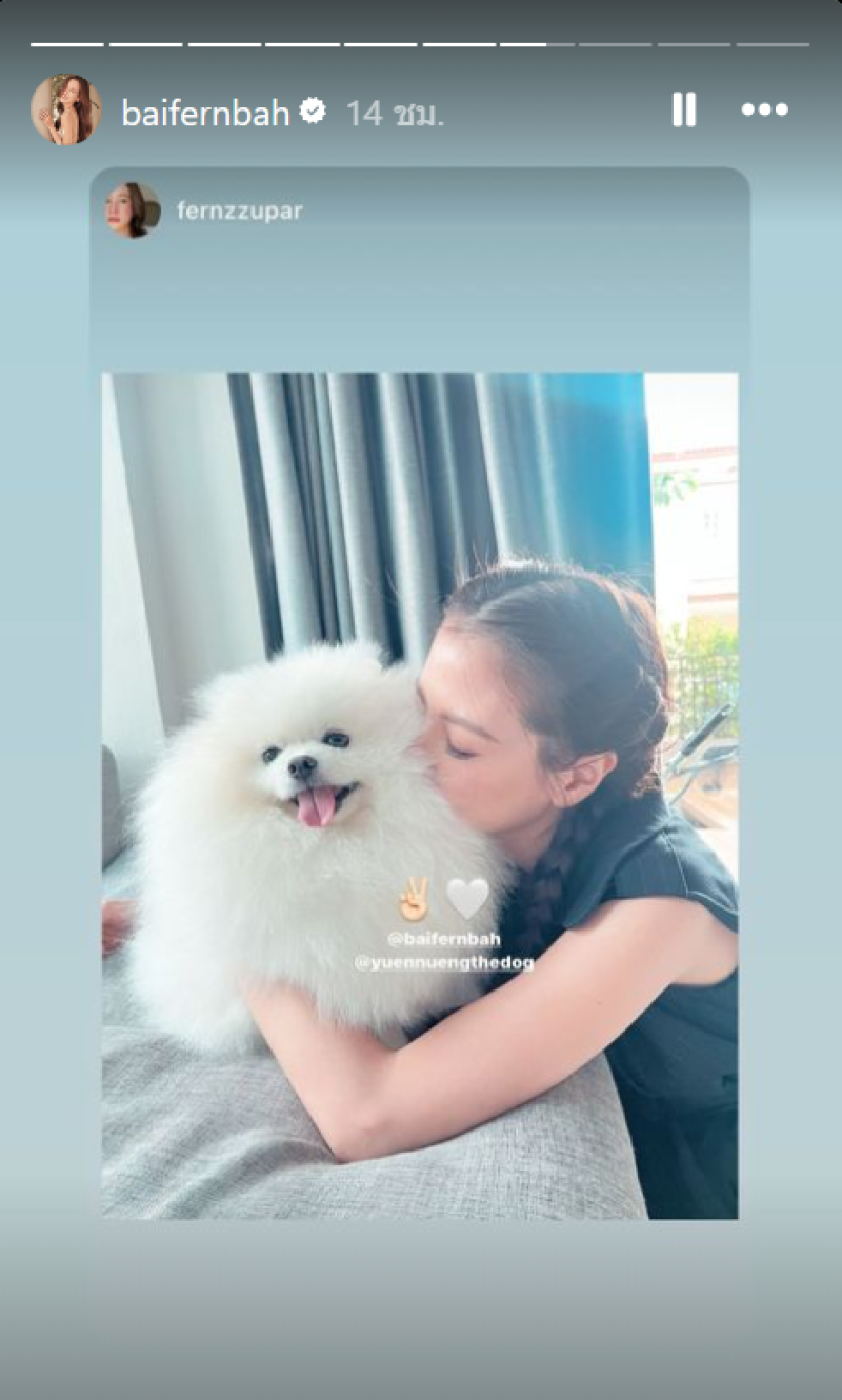 ล่าสุด ทางผู้จัดการส่วนตัว ของ ใบเฟิร์น พิมพ์ชนก ที่ทั้งสองคนมีความสนิทกันเสมือนกับพี่น้อง ได้โพสต์ภาพใบเฟิร์นกอดน้องหมา พร้อมใส่อิโมจิชู2นิ้ว กับหัวใจสีขาวพร้อมกับแท็กหา ใบเฟิร์น นั้น