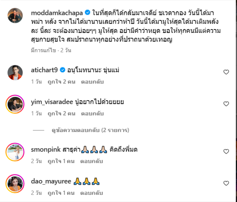 เรียกได้ว่า เป็นพิธีกรที่โด่งดังมากอย่าง มดดํา คชาภา ที่อยู่ในวงการมานานมาก ล่าสุดมดดำไดเเผยภาพบรรยากาศหลังไปไหว้เจดีย์ ชเวดากอง พร้อมระบุข้อความว่า ในที่สุดก็ได้กลับมาเจดีย์ ชเวดากอง วันนี้ได้มาพม่า หลัง จากไม่ได้มานานเลยกว่าห้าปี วันนี้ได้มามูให้สุดได้มาเติมพลังละ นี้ละ จะต้องมาบ่อยๆๆ มูให้สุด อย่ามีคำว่าหยุด ขอให้ทุกคนมีแต่ความสุขกายสุขใจ สมปราถนาทุกอย่างที่ปราถนาด้วยเทอญ