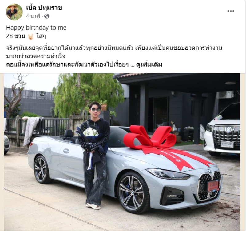 โดยงานนี้ หลายคนโฟกัสไปที่รถป้ายแดง ทะเบียนรถ คือ 3874 และก็มีแฟนๆเข้ามาอวยพรวันเกิดปีนี้เช่นกัน