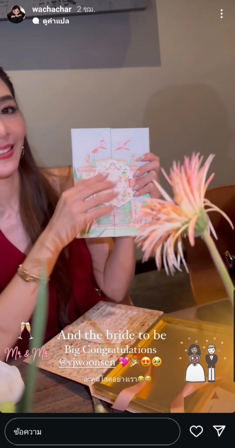 อีกหนึ่งว่าที่เจ้าสาวป้ายแดงอย่างนักแสดงสาว วุ้นเส้น วิริฒิพา ภักดีประสงค์ และแฟนหนุ่มไฮโซ นิกม์ ธนะภูมิกุล ที่ได้ฤกษ์ดีงานวิวาห์ในช่วงเดือนกันยายนเร็วๆนี้ ล่าสุด วุ้นเส้น ได้ออกมาเผยให้เห็นการ์ดงานเเต่งที่มีทั้งความน่ารักหรูหราเเละอลังการงานสร้างที่ทั้งคู่ตั้งใจออกเเบบ