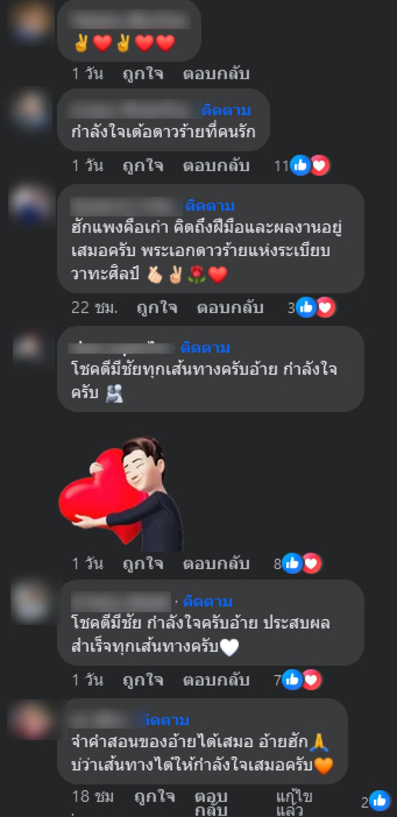 ถือโอกาสลาพ่อทั้งสอง เพื่อไปเดินตามฝันอีกขั้นหนึ่งของผม จะไปในทิศทางไหน ยังไง จะทำอะไรอยู่ไหน ผมก็คือลูกระเบียบวาทะศิลป์้เหมือนเดิม ขอบพระคุณพ่อแม่ครูบาอาจารย์ทุกท่านเพื่อนพ้องน้องพี่ที่ร่วมทุกข์ร่วมสุขกันมาทุกๆคน หวังว่ามีโอกาสเราคงได้เจอกันใหม่ ขอบคุณพี่น้องแฟนคลับแฟนเพลงผู้มีพระคุณที่น่ารักทุกท่าน ต่อจากนี้ท็อปจะไปทำอะไรอยู่ที่ไหนเดินยังไงก็ขอกำลังใจจากทุกคนให้ฮักแพงและติดตามผมเหมือนเดิมนะครับ รักผูกพันธ์และเคารพเสมอ ระเบียบวาทะศิลป์ จากใจท็อปธนาชัย งานนี้แฟนๆได้เข้ามาคอมเมนต์ส่งกำลังใจเป็นจำนวนมาก
