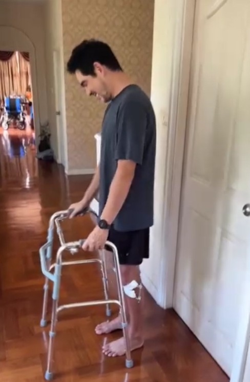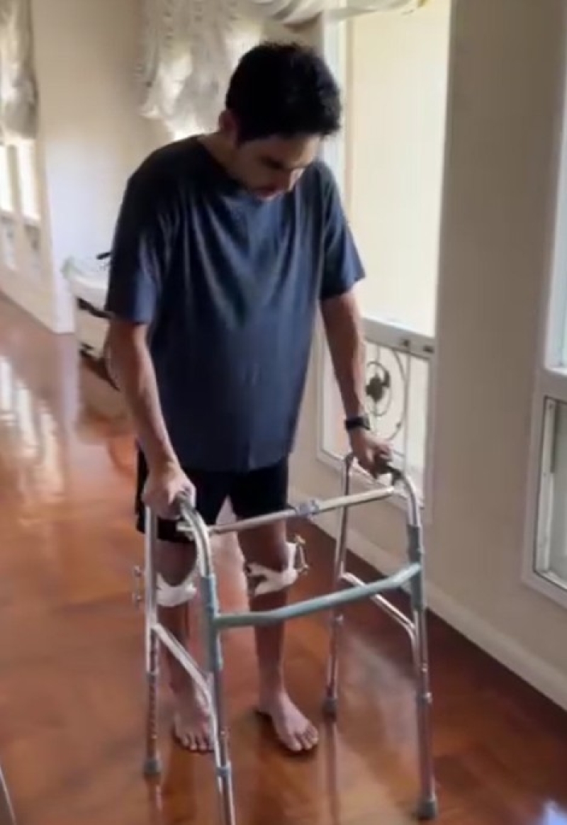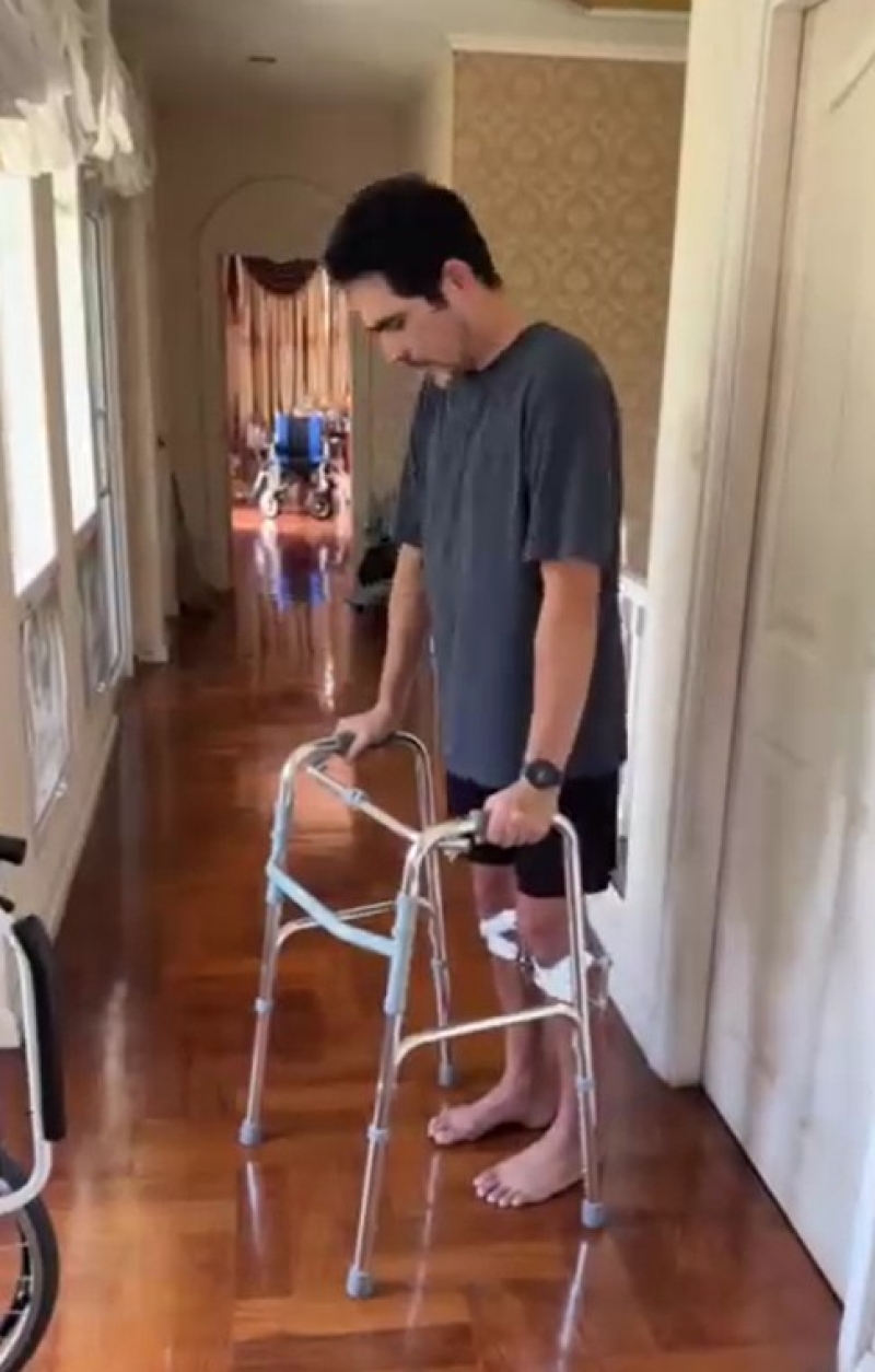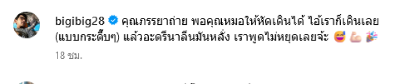 ต่อมาได้โพสต์คลิปที่กำลังฝึกเดิน พร้อมเขียนแคปชั่นว่า คุณภรรยาถ่าย พอคุณหมอให้หัดเดินได้ ไอ้เราก็เดินเลย(แบบกระดึ๊บๆ) แล้วอะดรีนาลีนมันหลั่ง เราพูดไม่หยุดเลยจ้ะ