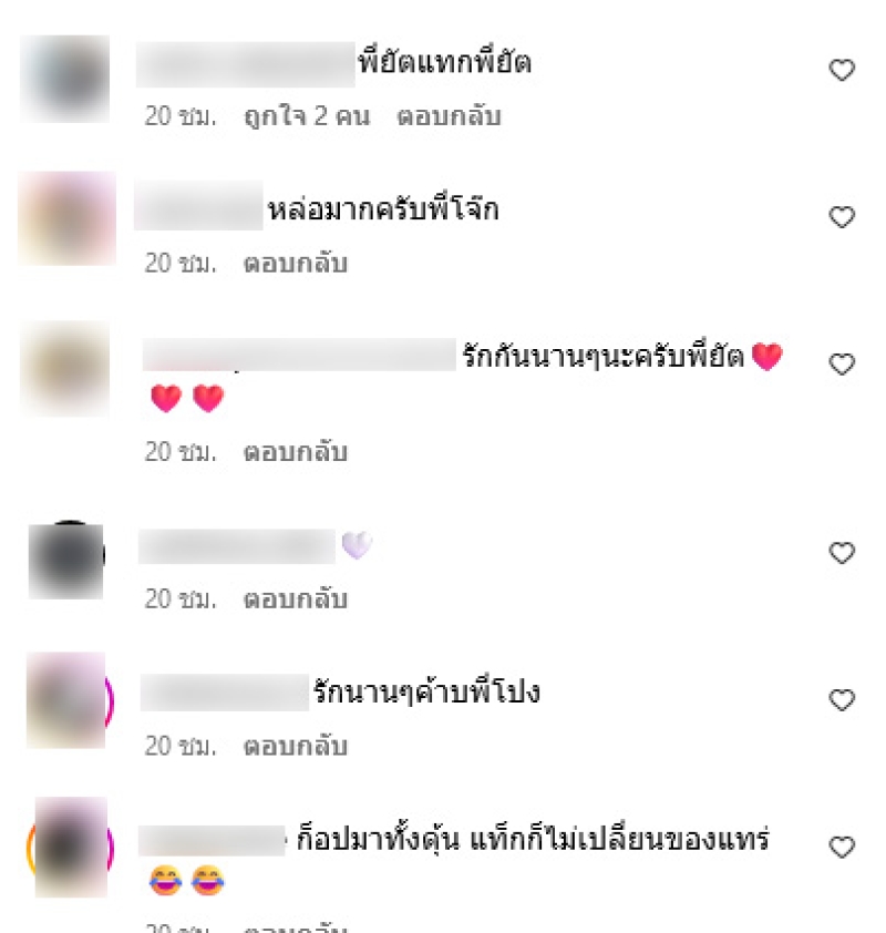 หลังจากที่ได้โพสต์ภาพเเละข้อความหวานๆลงในอินสตาแกรมส่วนตัวนั้นแฟนๆก็ได้เข้ามาคอมเมนต์อย่างมากเเต่โดนภรรยาช็อตฟีลว่า โอ้ยยยยยย นานๆจะโพสที ก๊อปเมียเพื่อออออออออออ ,มาหวานนะครับพี่โจ๊ก,เกมอะไรมารึป่าวท่าน 5555,tag ตัวเองเฉยยย copy ไม่เนียนเลยเสี่ย 55555,พี่ยัตแทกพี่ยัต เป็นต้น