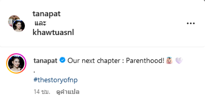พร้อมเขียนเเคปชั่นว่า Our next chapter : Parenthood! thestoryofnp