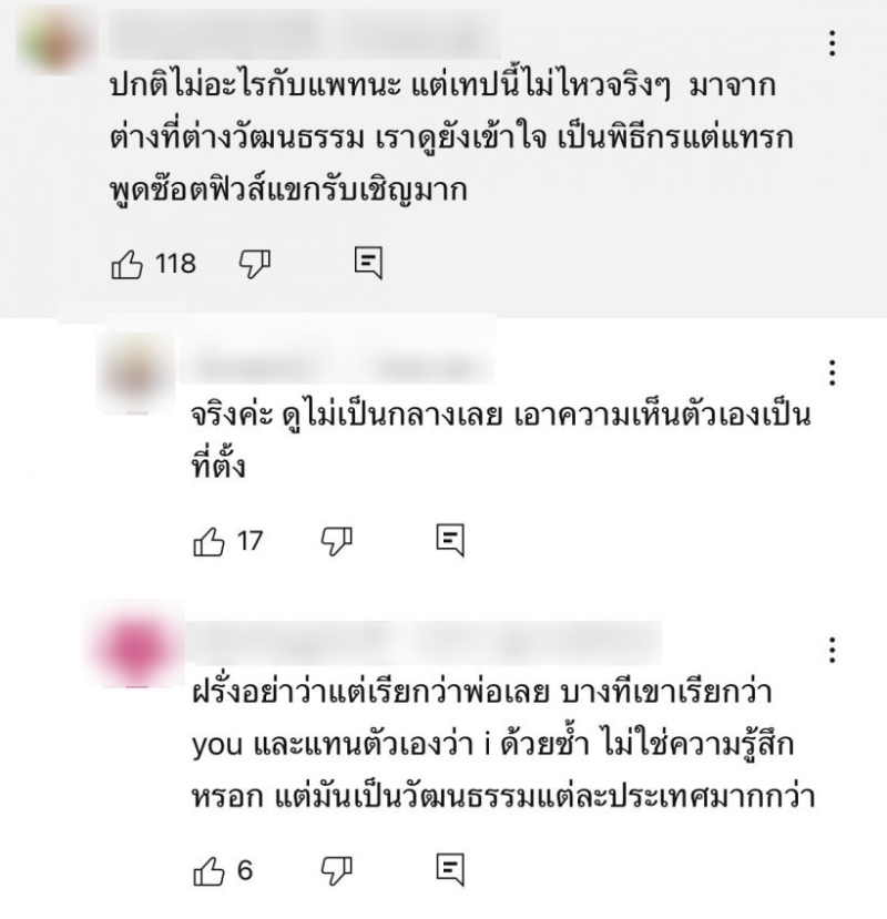 วิทวัส : มันเป็นวัฒนธรรมที่ไม่เหมือนกัน ของเเพทเป็นเเบบไทยเรา ของบ้านนางบีก็เป็นเเบบฝรั่ง