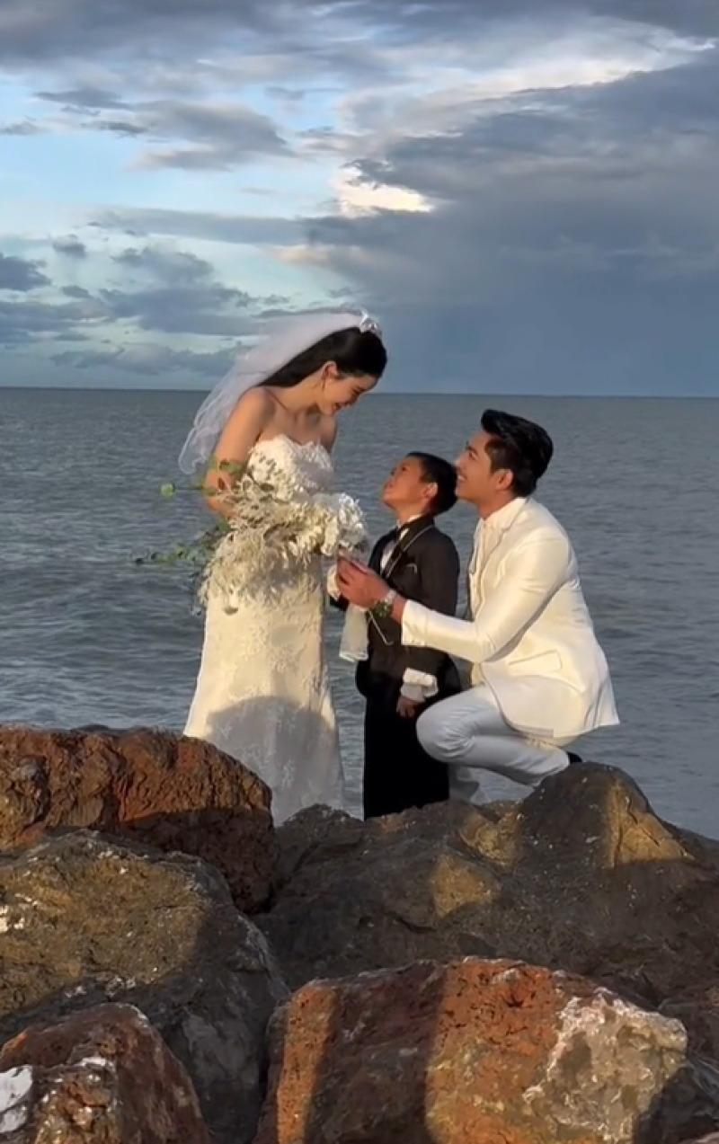 โดยเจ้าบ่าวสุดหล่อหน้าตาคุ้นๆ ก็ไม่ใช่ใครที่ไหน แต่คือ อ้ายผาแดง หรือ ไวน์-ยุทธพิชัย ผาเนตร พระเอก MV สุดฮอตของเพลง นางไอ่ของอ้าย ที่ขับร้องโดย มนต์แคน แก่นคูน และทั้งคู่ก็มักจะผลัดกันลงรูปคู่ผ่านทางโซเชียลให้เห็ยนกันอยู่บ่อยๆ นั่นเองจ้า