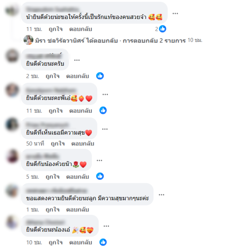 งานนี้ เหล่าชาวเน็ตเข้ามาแสดงความยินดีกันเพียบ แต่อย่างไรก็ตามนะคะ รอทาง เอ๋ มิรา ออกมาพูดเองดีกว่าจ้า