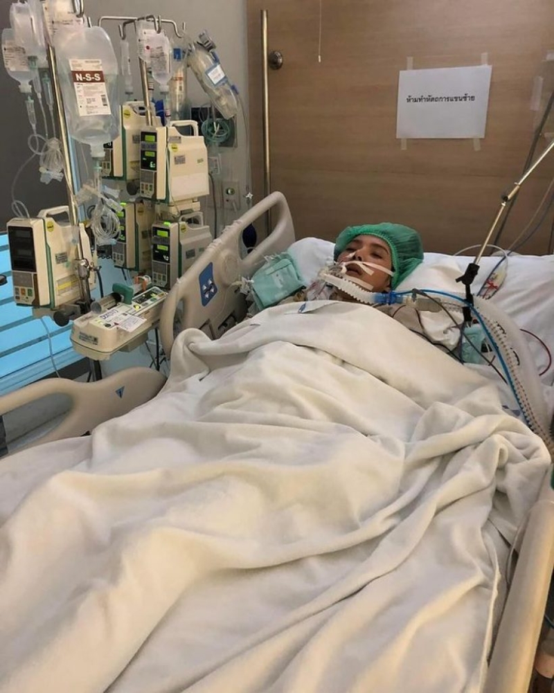 (เส้นเลือดสุดท้าย ถ้าติดเชื้ออีก ก็ไม่รอด โรงพยาบาลโทรหาตอนตี 1 เพื่อให้มาเซนต์ชื่อ ยอมให้เจาะคอ) PICC line นี้จะไม่เอาออก ถึงแม้ไม่ได้ใช้ จะพันเก็บที่แขน ห้ามโดนน้ำ แต่ความจริงติดเชื้อ ให้เลือด ให้เกล็ดเลือด ให้พลาสม่า ให้ยาฆ่าเชื้อตลอด) และเจาะข้างลำตัว 2 ท่อเพื่อเดรน หนอง และน้ำ ออก เพราะว่าข้างปอดมีหนอง ถึงขั้นใส่ท่อลงไปล้างโดยได้แค่ยาชาเท่านั้น เจ็บ และหวาดเสียวแค่ไหน