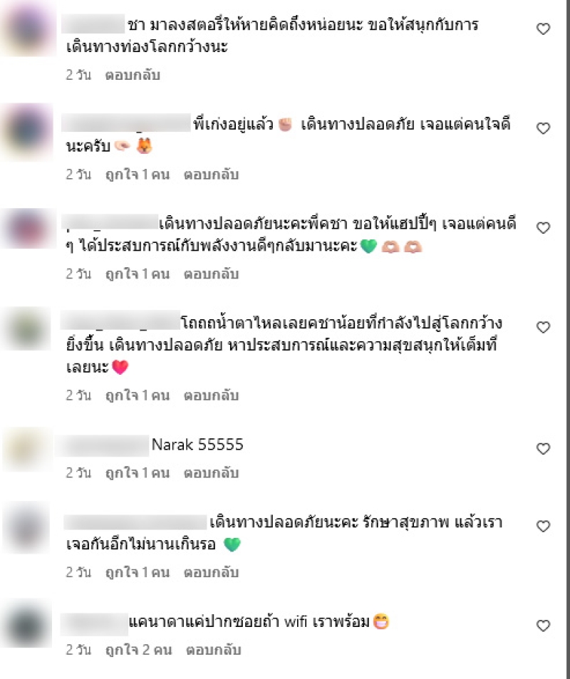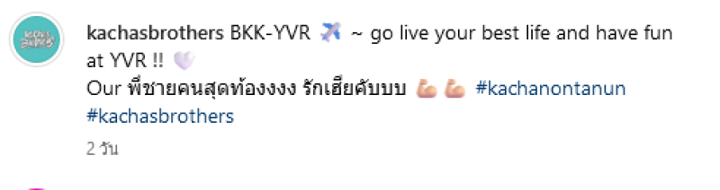 โดยอินสตาแกรมของพี่ชายคชาได้โพสต์คลิปที่สนามบินพร้อมเขียนแคปชั่นว่า BKK-YVR go live your best life and have fun at YVR !! Our พี่ชายคนสุดท้องงงง รักเฮียคับบบ kachanontanun kachasbrothers