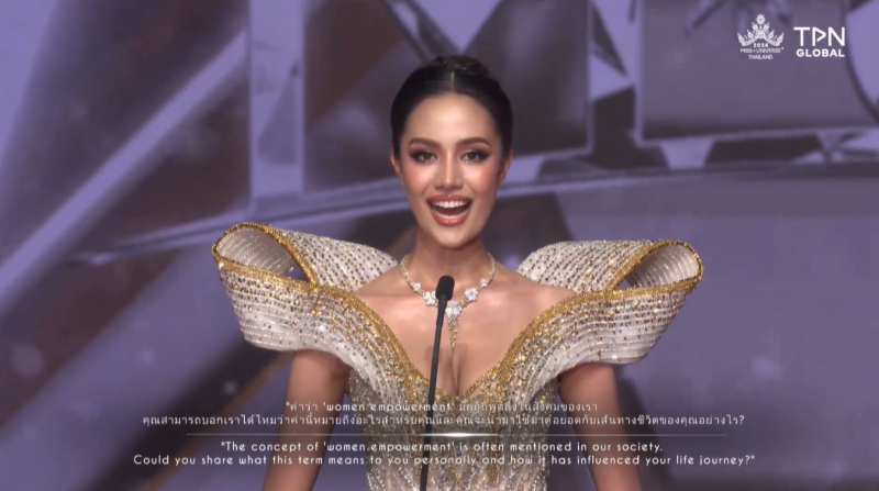 ในรอบ 3 คน ได้รับคำถามเดียวกัน คือ คำว่า Women Empowerment มักถูกพูดถึงในสังคมของเรา บอกเราได้หรือไม่ว่าคำนี้หมายถึงอะไรสำหรับคุณ และคุณจะนำมาใช้ มาต่อยอด กับเส้นทางชีวิตของคุณอย่างไร