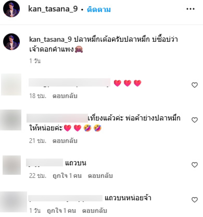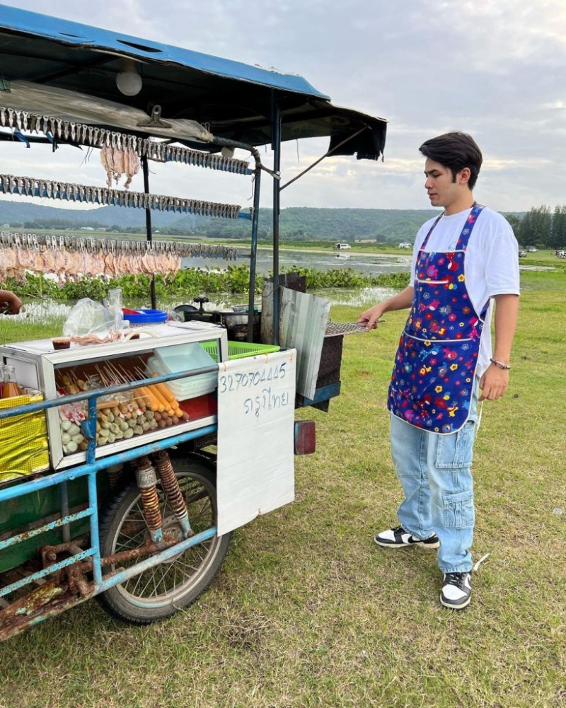 ซึ่ง กานต์ ได้โพสต์ภาพตัวเองกำลังยืนขายลูกชิ้นทอดเเละปลาหมึกปิ้ง พร้อมเขียนเเคปชั่นว่า ปลาหมึกเด้อครับปลาหมึก บ่ซื้อบ่ว่าเจ้าดอกคำแพง งานนี้ทำเอาแฟนๆต่างเข้ามาคอมเมนต์ อาทิ เที่ยงแล้วค่ะ พ่อค้าย่างปลาหมึกให้หน่อยค่ะ,แถวบนหน่อยจ้า เป็นต้น