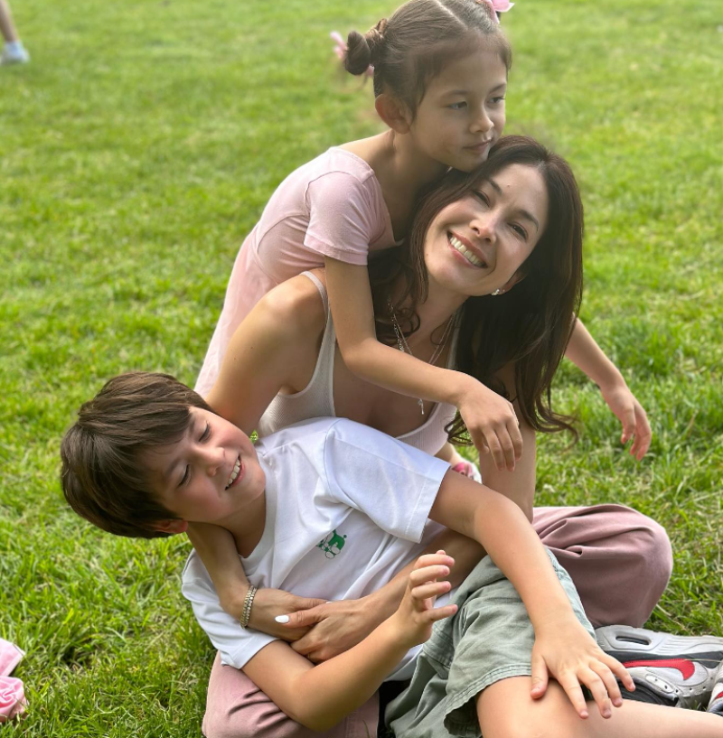 พามาด้วยค่ะ มาอยู่ที่นี่เลยค่ะ (เป็นยังไงบ้างกับการพาน้องมาอยู่ที่เมืองไทย?) ก็กำลังเพิ่งเริ่มต้นค่ะ ก็สนุกสนานไปค่ะ (เด็กๆ กำลังปรับตัวอยู่?) ใช่ค่ะ