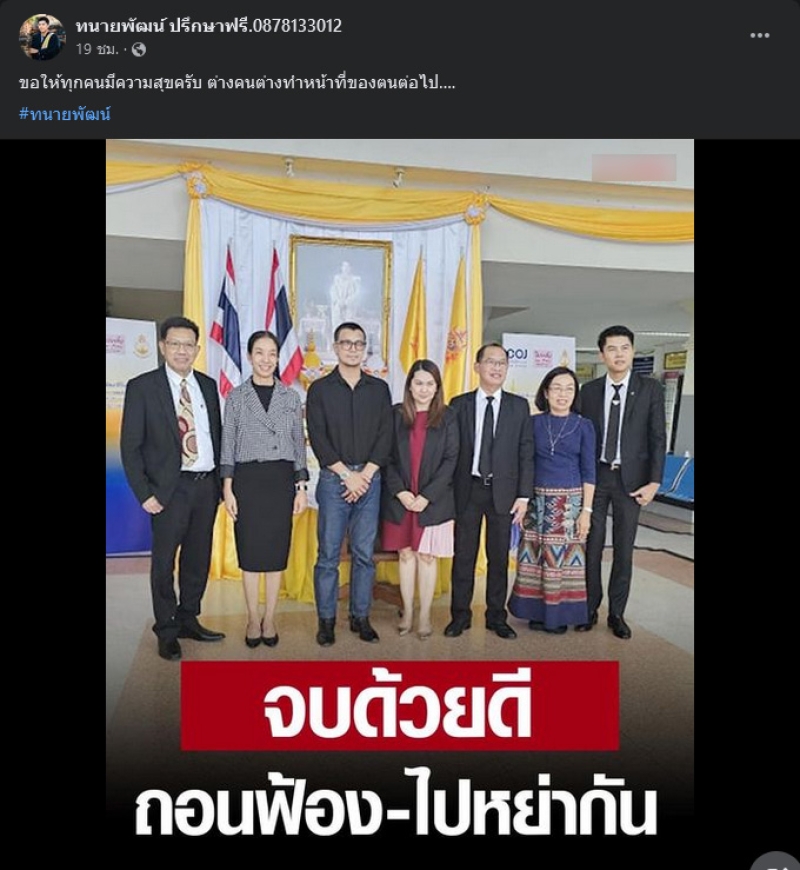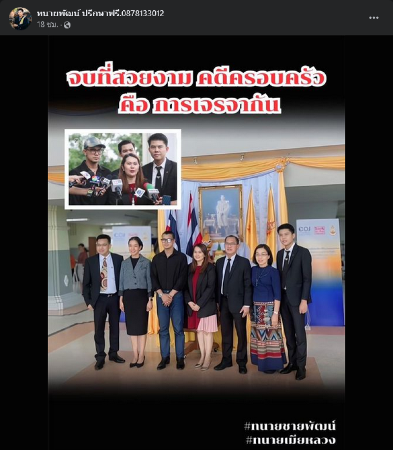 ล่าสุดทางด้าน ทนายพัฒน์ ทนายความส่วนตัวของแม่จูน เพ็ญชุลี ได้เคลื่อนไหว โพสต์เพจเฟสบุ๊กว่า ขอให้ทุกคนมีความสุขครับ ต่างคนต่างทำหน้าที่ของตนต่อไป.... ทนายพัฒน์ จบที่สวยงาม คดีครอบครัว คือ การเจรจากัน