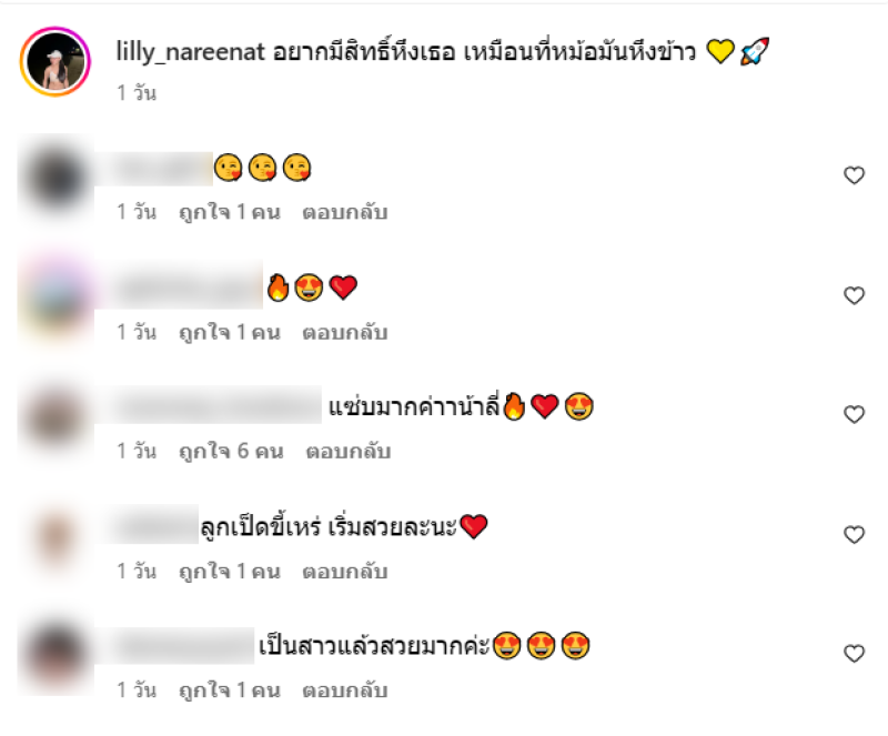 ท่ามกลาง เหล่าแฟนๆก็เข้ามาแสดงความคิดเห็นกัยเพียบ เช่น แซ่บมากค่าาน้าลี่,เป็นสาวแล้วสวยมากค่ะ,พี่ลี่น่ารักอีกแย้ววว,น่ารักจังเลยค่ะคนน่ารักจุ๊ฟ.,น่ารักน่าเอ็นดู,เเซบเเท่ลูกยิ่งโตยิ่งสวย เป็นต้น