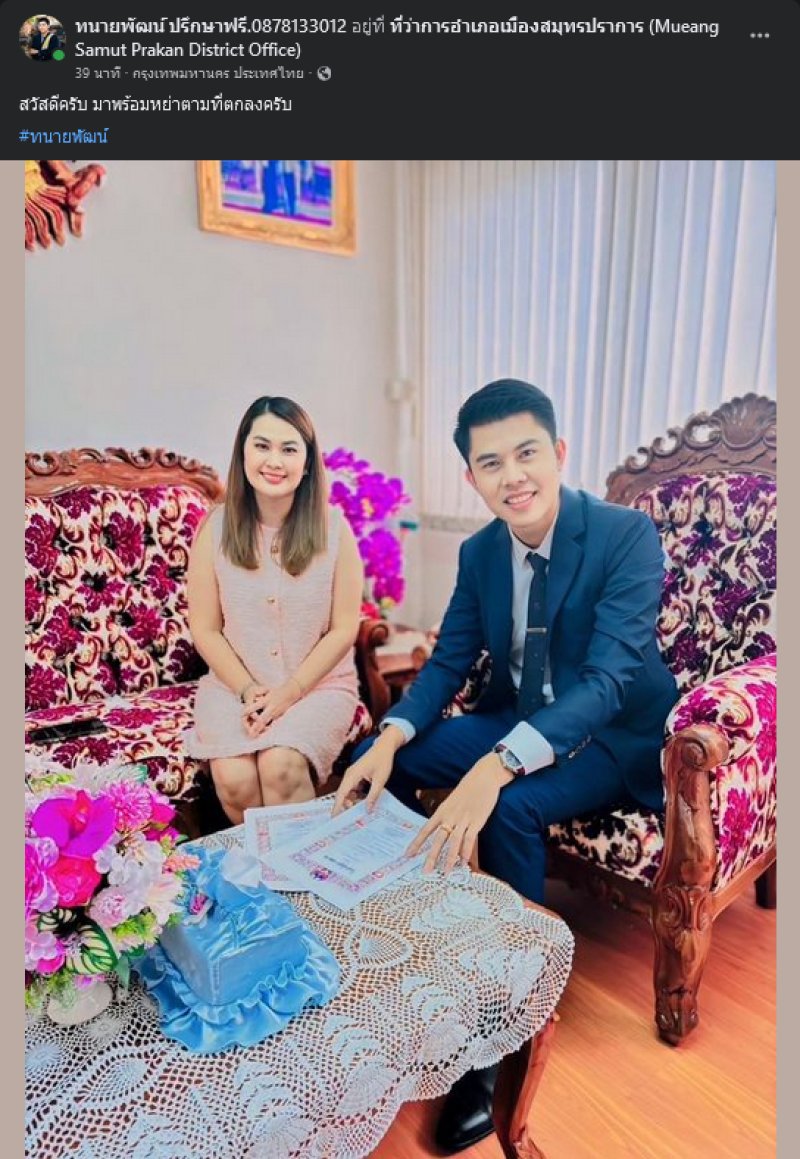 ซึ่งทนายพัฒน์ได้เขียนข้อความว่า สวัสดีครับ มาพร้อมหย่าตามที่ตกลงครับ ทนายพัฒน์ ด้าน ทนายเดชา ทนายของหนุ่ม กะลา แจ้งก่อนหน้านี้ว่า จบแล้วครับหนุ่มกะลาและจูน ถอนฟ้องและไปหย่ากัน ถ่ายภาพร่วมกับผู้พิพากษาหัวหน้าศาลผู้หญิงคนที่ยืนติดกับผมคือผู้พิพากษาหัวหน้าศาลส่วนผู้ชายที่ยืนติดกับคุณจูนคือผู้พิพากษาอาวุโสเจ้าของสำนวนวันนี้ตกลงเรียบร้อยแล้วถ่ายภาพกันภายในศาล ปัญหาครอบครัวจบได้ด้วยการพูดคุยกันครับ