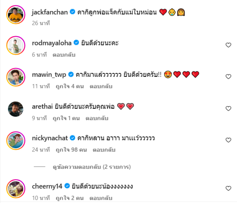 ขอแสดงความยินดีด้วยจ้า เมื่อล่าสุดทาง แจ็ค แฟนฉัน ได้เผยแฟนสาว ใบหม่อน คลอดลูกแล้ว โดยได้โพสต์ผ่านอินสตาแกรมส่วนตัว พร้อมระบุข้อความว่า คากิลูกพ่อแจ็คกับแม่ใบหม่อน หน้าฟ้าประทานแต่เด็ก เกิด 28 ก.ค. วันธงชัยไปเลย
