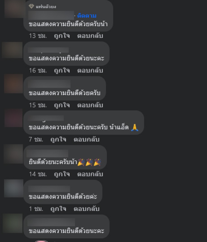 ขอบพระคุณแขกผู้มีเกียรติทั้งคนไทยและฝรั่งที่มาร่วมเป็นสักขีพยานด้วยครับ ขอบคุณหลานๆที่น่ารักที่มาช่วยงานนี้ด้วยครับ โล่งอกไปที ครอบครัวผมไม่เหลือลูกๆให้แต่งงานอีกแล้ว 555555 ก็คงต้องรอหลานๆ แต่ไม่รู้จะอยู่ถึงหรือเปล่า555555 ท่ามกลางแฟนๆแห่คอมเมนต์แสดงความยินดีมากมาย