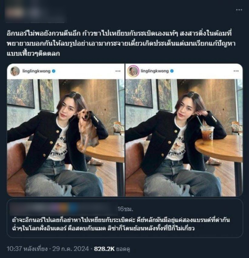 โพสต์ดังกล่าวนำไปสู่การวิจารณ์ เรื่องความละเอียดอ่อน จากประเด็นความขัดแย้ง โยงแบรนด์ที่สนับสนุน จนมีเเฟนๆหลายคนเข้าไปคอมเมนต์เตือน จนรอบแรกหลิงๆได้ลบภาพดังกล่าวทิ้งไปแต่โพสต์ใหม่ โดยใช้สติกเกอร์รูปน้องหมาแปะทับแก้วกาแฟแทน แต่อย่างไรก็ตามดูเหมือนจะไม่ช่วยอะไรเท่าไหร่ เพราะชาวเน็ตมองว่าเป็นการการล้อเลียน ไม่ใส่ใจประเด็นเรื่องความอ่อนไหวที่ทั่วโลกกำลังเรียกร้องกัน ก่อนที่ภาพประเด็นร้อนจะหายไปจากหน้าอินสตาแกรมของ หลิงหลิง อีกครั้ง