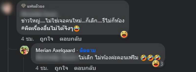 ซึ่งหลังจากที่ทางเพจ เจ๊มอย108 V1 ได้โพสต์ถึงประเด็นดังกล่าว ทำชาวเน็ตหลายคนแห่เดากันไปต่างๆนาๆ โดยเฉพาะเรื่องราวความรักระหว่าง พีเค กับนักธุรกิจสาว มิเรียม อัคเซลการ์ด ล่าสุด มิเรียม ก็ได้เข้าไปคอมเมนต์ตอบเองเลยในหลายประเด็นที่คนสงสัย ยืนยัน ไม่ได้ท้อง และไม่ได้มีแพลนแต่งงานค่ะ , ไม่เลิก ไม่ท้องค่ะคอนเฟริม