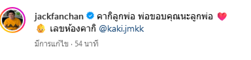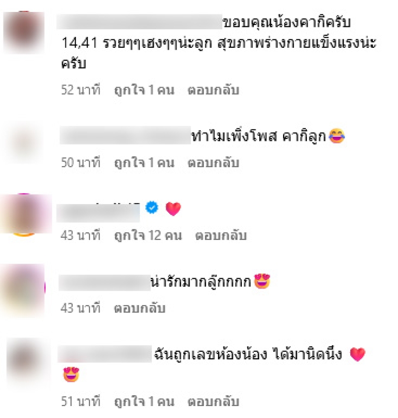 ก่อนหน้านี้ แจ็ค แฟนฉัน ได้ออกมาเปิดใจถึงเรื่องลูกชาย พร้อมกับพูดถึงตัวเลขเกี่ยวข้องกับน้องคากิ ซึ่งเลขที่ออกตรงกับเลขห้องน้องคากิ คือ 1402 ตรงกับผลรางวัลสลากกินแบ่งรัฐบาลประจำงวดนี้ คือ407041 โดย แจ็ค แฟนฉัน ได้โพสต์ภาพลูกชายสุดที่รัก พร้อมเขียนแคปชั่นว่า คากิลูกพ่อ พ่อขอบคุณนะลูกพ่อ เลขห้องคากิ ท่ามกลางแฟนๆที่ได้จามเลข น้องคากิ ต่างคอมเมนต์มากมาย