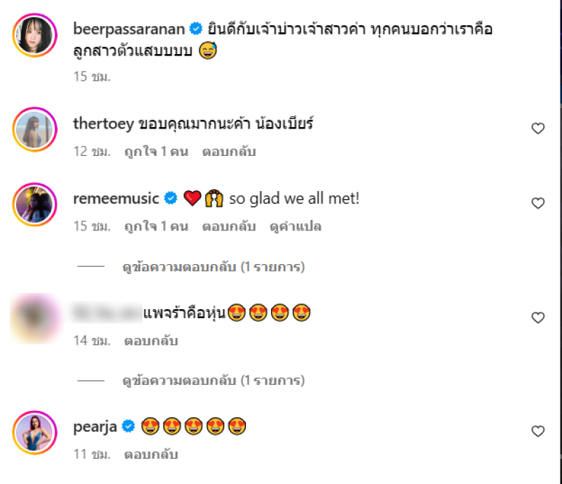 ล่าสุด ทางเบียร์ เดอะวอยซ์ ได้โพสต์รุปภาพ หลังจากที่ไปร่วมยินกับ โจอี้บอย และ เตย ด้วย พร้อมระบุแคปชั่นว่า ยินดีกับเจ้าบ่าวเจ้าสาวค่า ทุกคนบอกว่าเราคือ ลูกสาวตัวแสบบบบ และทางเตยเองก็ได้มาตอบกลับใต้โพสต์ว่า ขอบคุณมากนะค้า น้องเบียร์