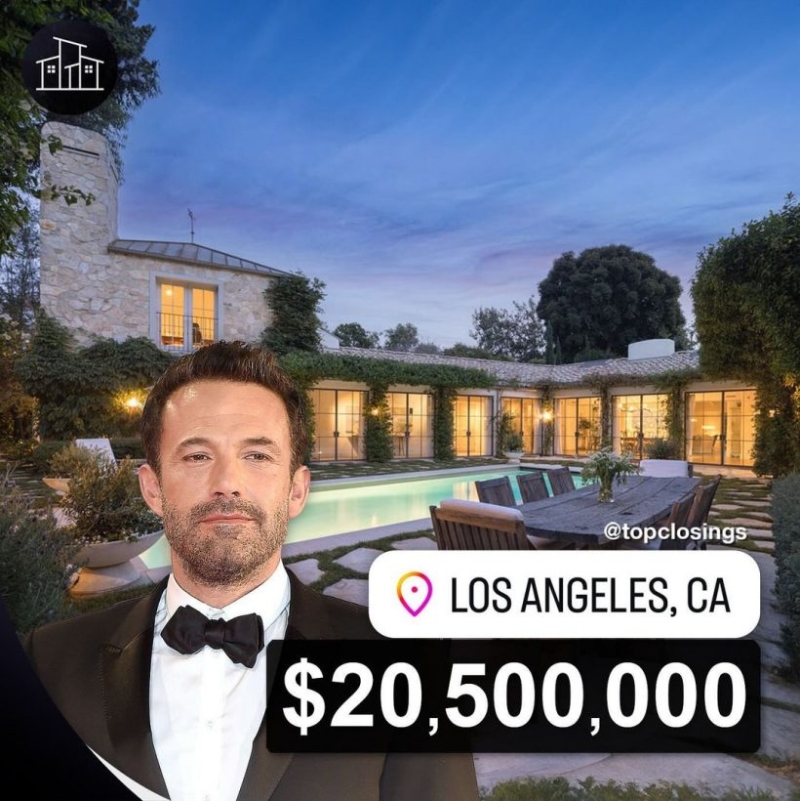 ท่ามกลางข่าวขาเตียงหักกับภรรยาซุปตาร์สาวสวย Jennifer Lopez ซึ่งทางด้านนักแสดงหนุ่ม เบน แอฟเฟล็ก (Ben Affleck) ก็โนสนโนแคร์ เพราะล่าสุดมีรายงานว่าเขาเพิ่งทุ่มเงิน 20.5 ล้านเหรียญ (ประมาณ 700 ล้านบาท)ซื้อบ้านหลังใหม่ใน Sullivan Canyon!