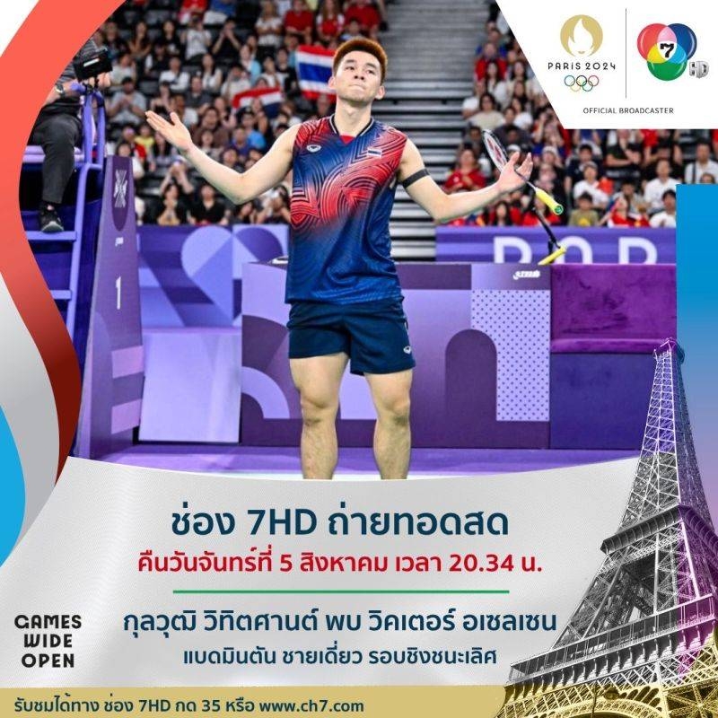 เมื่อทางสถานีจะมีการถ่ายทอดสดการแข่งขันโอลิมปิกเกมส์ 2024 ครั้งประวัติศาสตร์แบดมินตันชายเดี่ยวรอบชิง วิว กุลวุฒิ คนไทยคนแรก (มืออันดับ 8 ของโลก) เข้าชิงเหรียญทอง พบ วิคเตอร์ อเซลเซน (เดนมาร์ก มืออันดับ 2 ของโลก)