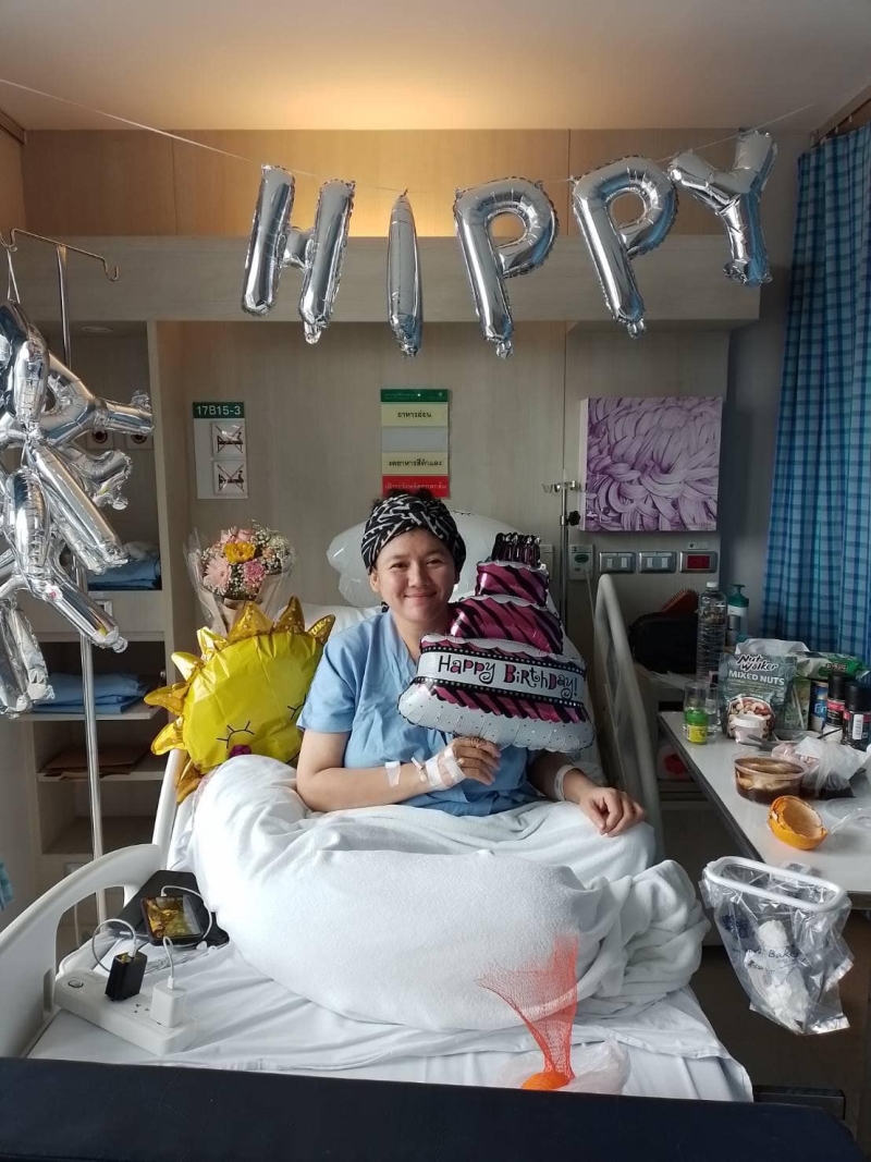 สำหรับปีนี้ทราย ได้ฉลองวันเกิดอายุ 44 ปี บนเตียงคนไข้ในโรงพยาบาล