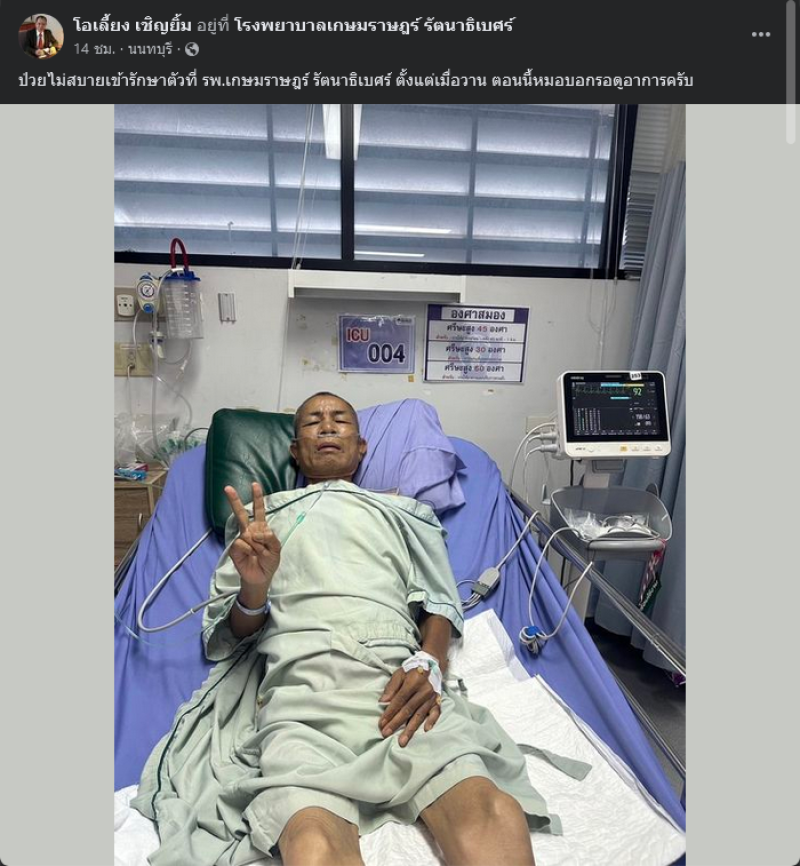 ล่าสุดได้ออกมาโพสต์แจ้งผ่านเฟซบุ๊คส่วนตัวว่า ป่วยไม่สบายเข้ารักษาตัวที่ รพ.เกษมราษฎร์ รัตนาธิเบศร์ ตั้งแต่เมื่อวาน ตอนนี้หมอบอกรอดูอาการครับ งานนี้แฟนๆและคนวงการบันเทิงต่างเข้ามาคอมเมนต์ส่งกำลังใจอย่างมาก