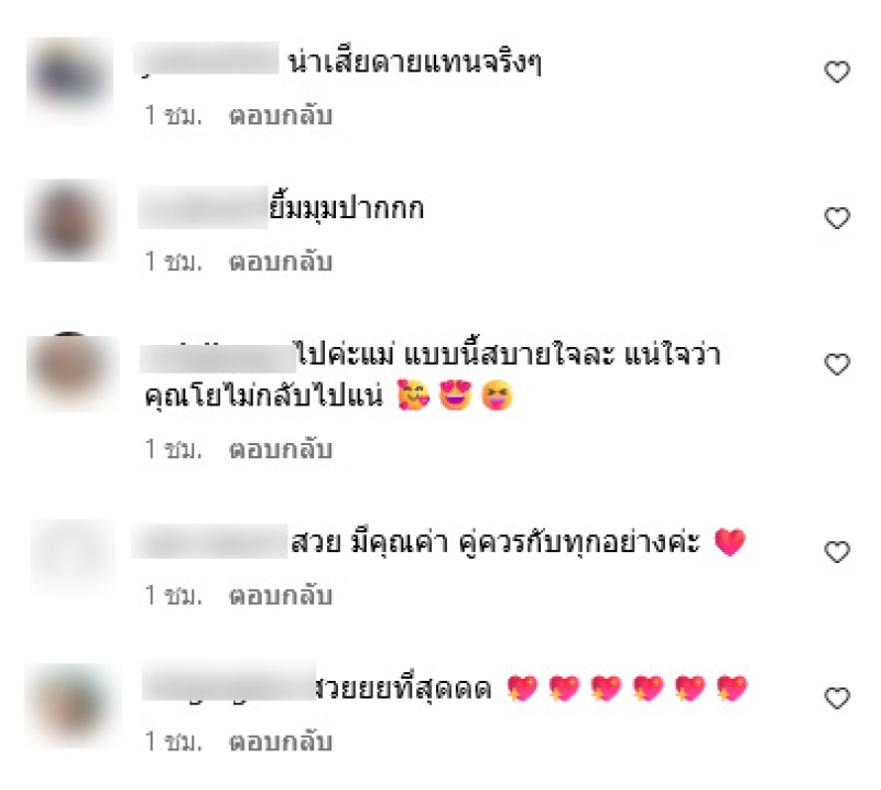 ซึ่งด้านปุ๊กลุก ฝนทิพย์ ก็ชมว่า "สวยยยย" และดีเจต้นหอมบอกว่า "ฟาดดด!!!" พร้อมทั้งยังมีแฟนๆหลายคนเข้ามาคอมเมนต์มากมาย อาทิ สวยแพงมีคุณค่า,ไปค่ะแม่ แบบนี้สบายใจละ แน่ใจว่าคุณโยไม่กลับไปแน่,ยิ้มมุมปากกก,น่าเสียดายแทนจริงๆ เป็นต้น