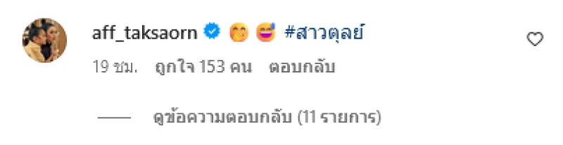 พร้อมแคปชั่นระบุเพิ่มเติมบอกว่า "มาพร้อมกันทีเดียวเลยก็ได้ค่ะ อยากลงแข่งประเภททีม !!!! #สาวตุลย์รอรัก" ทางด้านนางเอกสาว แอฟ ทักษอร ก็มาคอมเมนต์บอกว่า "#สาวตุลย์" ด้วย