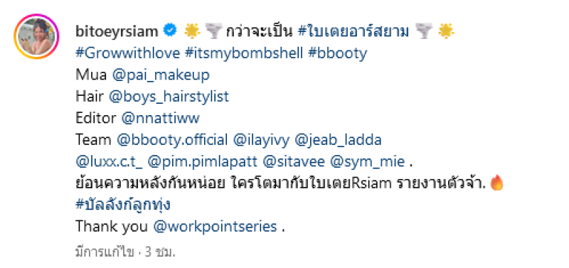 โดยล่าสุด ใบเตย ได้โพสต์อินสตราแกรมส่วนตัว รวมมิตรภาพในอดีต เทียบกับปัจจุบัน พร้อมแคปชั่นระบุว่า กว่าจะเป็น #ใบเตยอาร์สยาม" , "ย้อนความหลังกันหน่อย ใครโตมากับใบเตยRsiam รายงานตัวจ้า ท่ามกลางแฟนคลับแห่คอมเมนต์สนั่น อาทิ ขนลุกกกกกกกกก,ทำถึงมากก,ถูกต้องงงงงงงงง,สุดๆ ทุกก้าววว เป็นต้น
