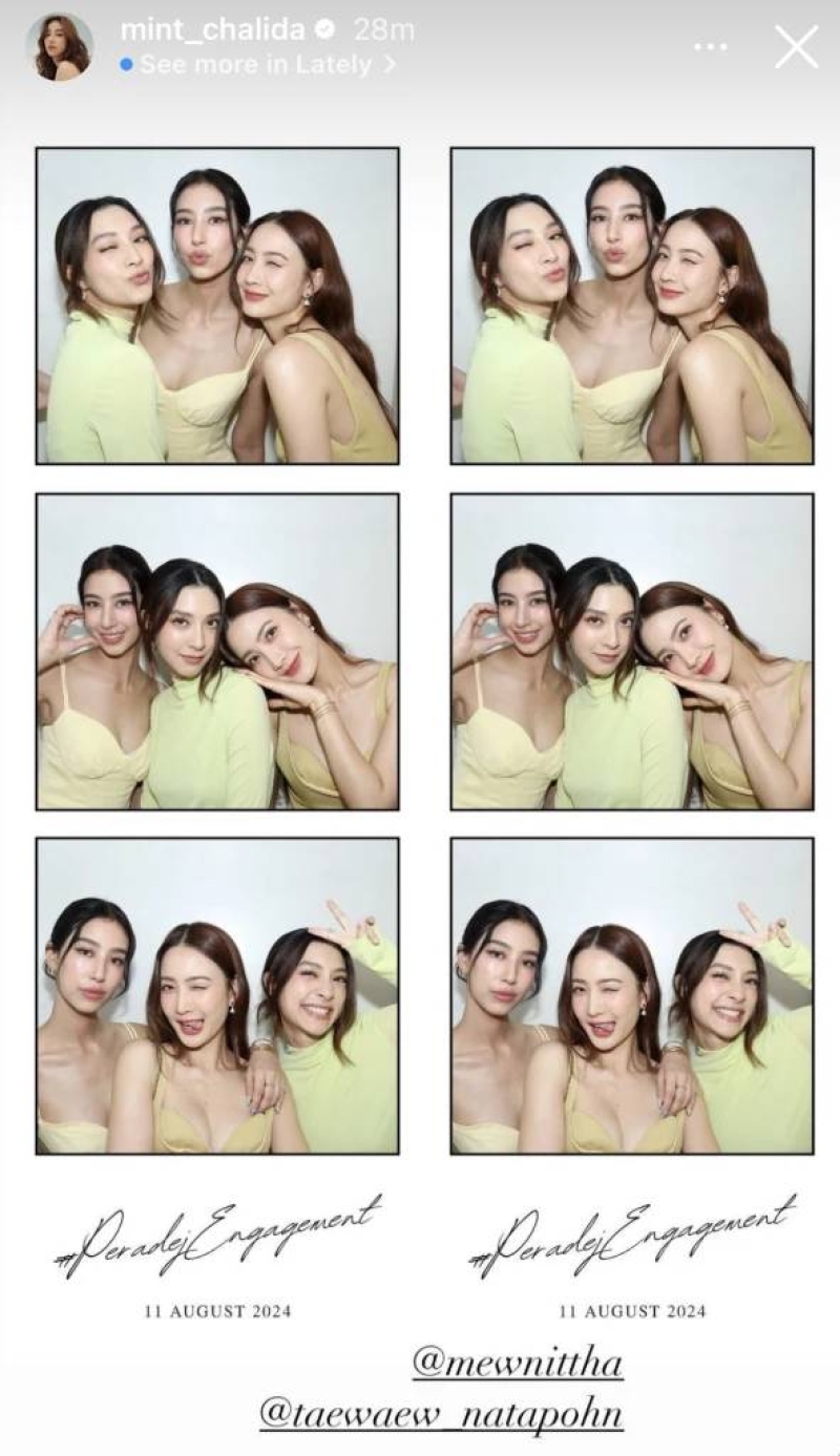 เป็นเจ้าบ่าวเจ้าสาวป้ายเเดงเป็นที่เรียบร้อยสำหรับนางเอกสาว แมท ภีรนีย์ และ เฟม ภีมเดช ที่เมื่อวานนี้ประกาศข่าวดีอีก เปิดฤกษ์แต่งรวดเร็วทันใจ "Save the date เด้อสู 11.08.2024 #PeradejEngagement" ซึ่งบรรยากาศงานวิวาห์เต็มไปด้วยครอบครัว และเพื่อนสนิทจาก "แก๊งเฟอร์บี้" ซึ่ง แต้ว ณฐพร รับบทถือประตูเงินประตูทองคู่กับ มิว นิษฐา