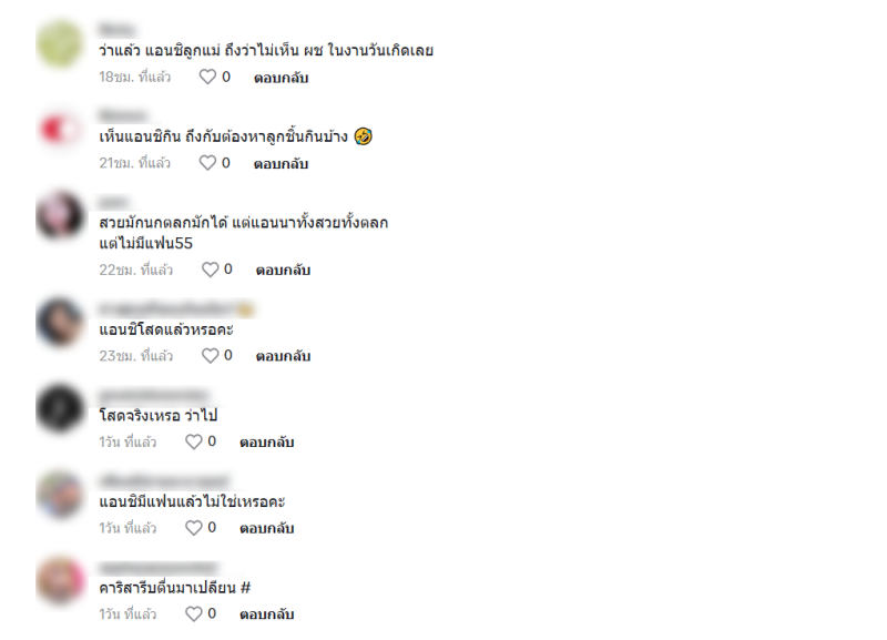 งานนี้ หลังจากคลิปเผยออกไปนั้น ได้มีชาวเน็ตต่างสงสัยว่า แอนชิลีนั้นเลิกกับเควินแล้วหรอ ต่างเข้ามาคอมเมนต์เพียบ เช่น ห๊ะ!!!! แอนชิลีโสด เสียดายจัง กำลังสร้างบ้านด้วยกันอยู่เลย,ว่าแล้ว แอนชิลูกแม่ ถึงว่าไม่เห็น ผช ในงานวันเกิดเลย,แอนชิโสดแล้วหรอคะ,โสดจริงเหรอ ว่าไป,แอนชิมีแฟนแล้วไม่ใช่เหรอคะ เป็นต้น