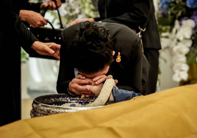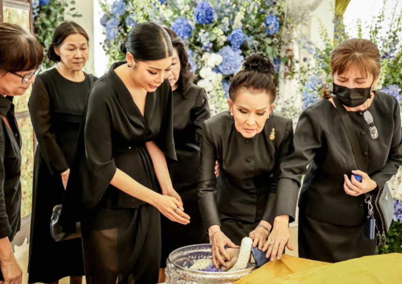 ล่าสุด วันนี้ (21 ส.ค.) เวลา 15.00 น มีพิธีรดน้ำศพ , เวลา 17.00 น. พิธีพระราชทานน้ำหลวงอาบศพ และเวลา 18.00 น. สวดพระอภิธรรม คนบันเทิง คนรู้จักทยอยเดินทางไปร่วมอาลัย ทางด้านภรรยา นั่งร้องไห้ตลอด พร้อมสวมกอด อรวี สัจจานนท์
